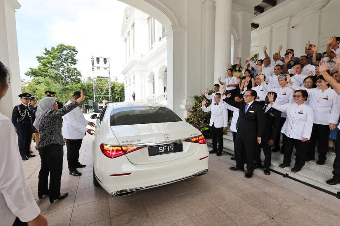 Puan Halimah mengucapkan selamat tinggal kepada kakitangannya di Istana pada sebelah pagi dengan acara memuncak dengan majlis perpisahan yang dihadiri lebih 200 individu daripada pelbagai latar belakang pada sebelah petang.