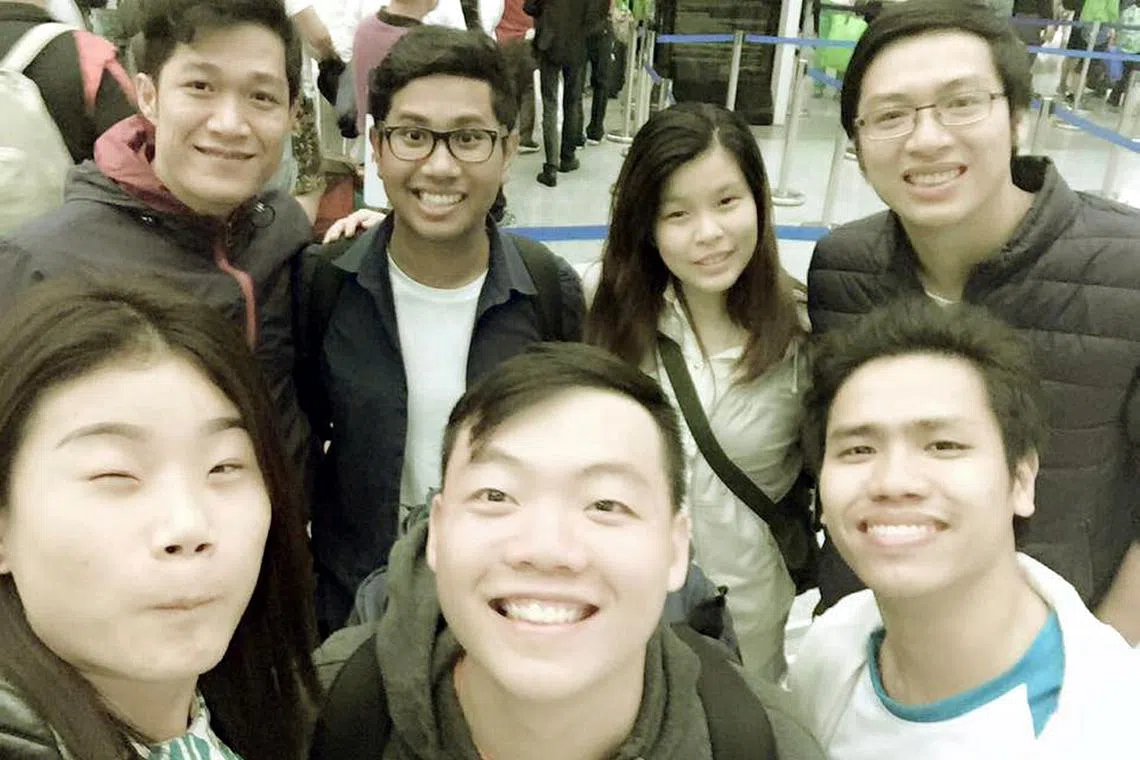 PELUANG BAGI BAKAT MUDA: Encik Raiyan (barisan belakang, dua dari kiri) bergambar dengan beberapa teman baru daripada seantero dunia yang dikenalinya menerusi program bekerja sambil belajar di The Ascott Limited di Vietnam. - Foto MTI -