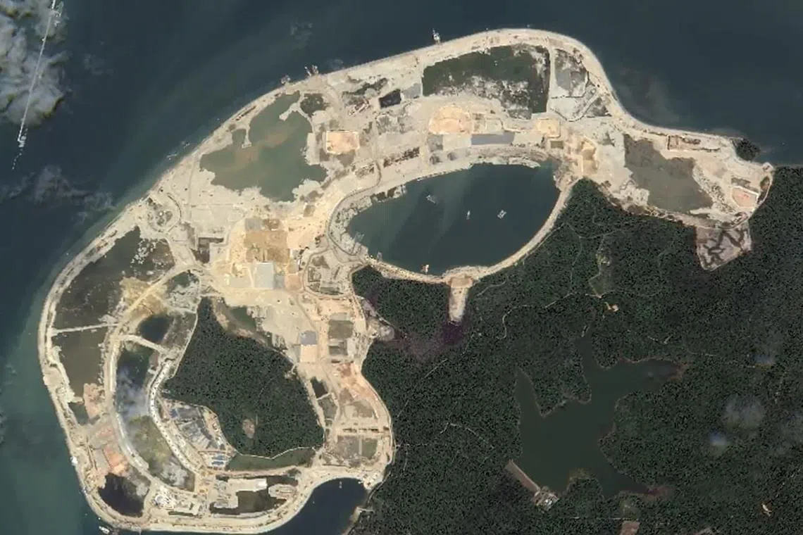 Sempadan polder telah dibentuk di Pulau Tekong, dan pembinaan tembok daik masih berjalan, kata Encik Desmond Lee.