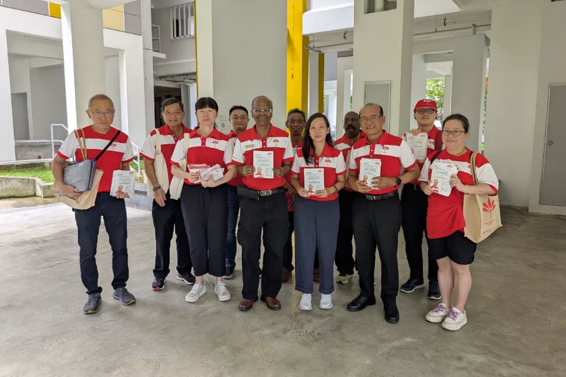 Empat calon pasukan Parti Kemajuan Singapura (PSP) bagi GRC Chua Chu Kang – Cik Wendy Low, Encik Lawrence Pek, Encik S. Nallakaruppan dan Encik A’bas Kasmani – bersama sukarelawan memulakan hari mereka dengan kunjungan rumah ke rumah di kawasan Brickland.