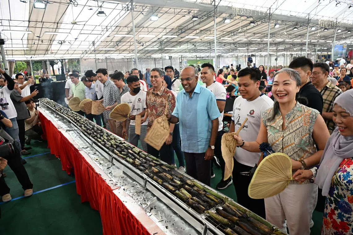 Seramai 700 penduduk Nee Soon turut hadir bagi melihat pulut panggang yang disusun rapi itu dipanggang beramai-ramai seperti satu projek kemasyarakatan.