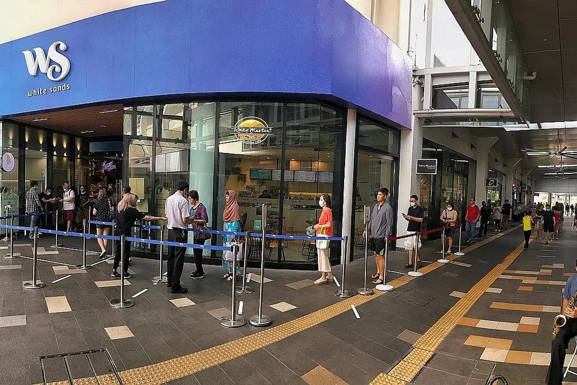 Pengendali pusat beli-belah dan kedai seperti Ikea dan COURTS Megastore perlu mengurangkan kapasiti operasi mereka untuk mengelak daripada mempunyai lebih daripada satu orang dalam satu ruang boleh dipakai berukuran 16 meter persegi - kira-kira saiz satu bilik tidur flat HDB - untuk mengurangkan kesesakan, apatah lagi pada waktu sibuk.