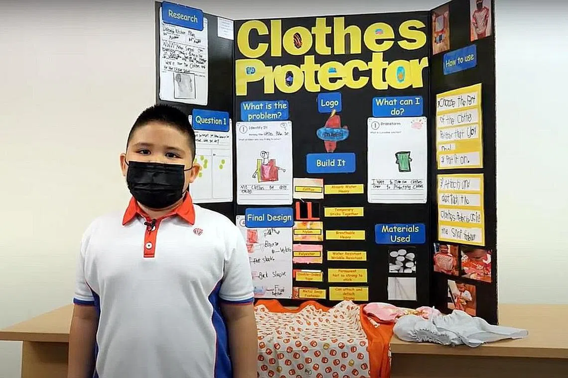 Kanak-kanak itu telah menerangkan tentang ciptaan mereka di Pameran Sedia-Masa Depan.