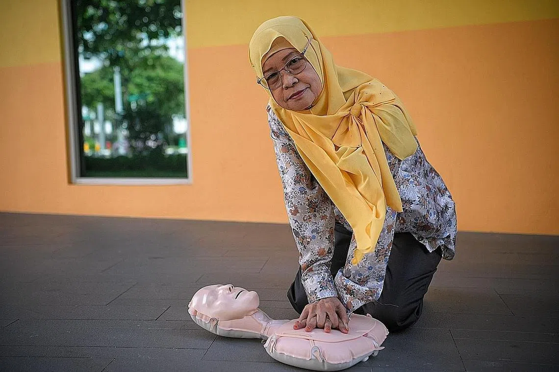 BELAJAR CARA BERI BANTUAN KECEMASAN: Cik Sariah Tomin mengikuti kursus memberi bantuan kecemasan dan kini giat menjadi sukarelawan Kecemasan dan Pendekatan Masyarakat (C2E) di kawasan Pioneer. - Foto BM oleh MARK CHEONG -