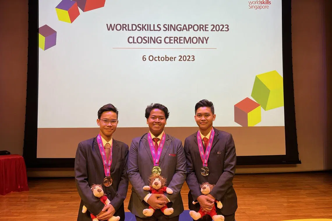Pelajar Politeknik Temasek raih pingat emas dalam kategori Penyelenggaraan Pesawat di WorldSkills Singapura