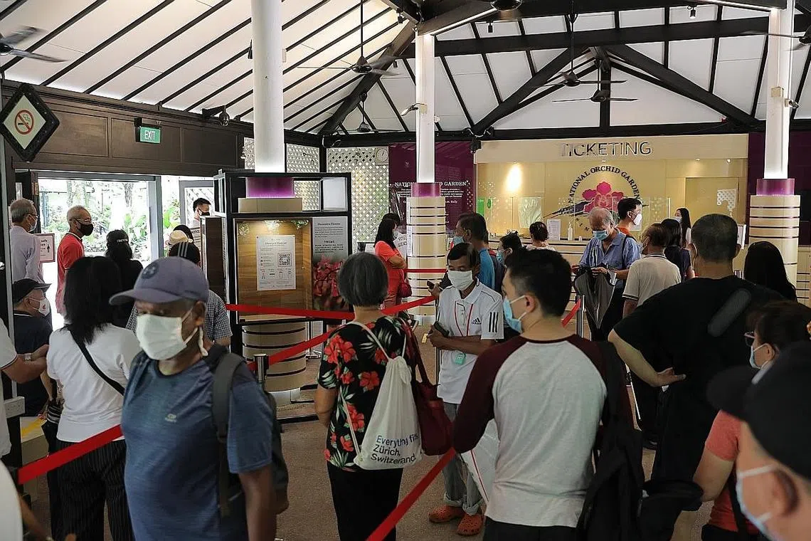 PENGUNJUNG Taman Orkid Negara semalam, dilihat beratur untuk memasuki tarikan di Kebun Bunga yang baru sahaja dibuka semula selepas menjalani peningkatan dengan kos $35 juta.