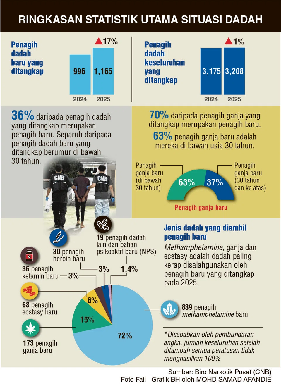 Sementara itu, laporan CNB itu mengetengahkan bahawa pecahan bilangan penagih dadah tempatan dari segi bangsa tidak banyak berubah pada 2025 berbanding 2024.