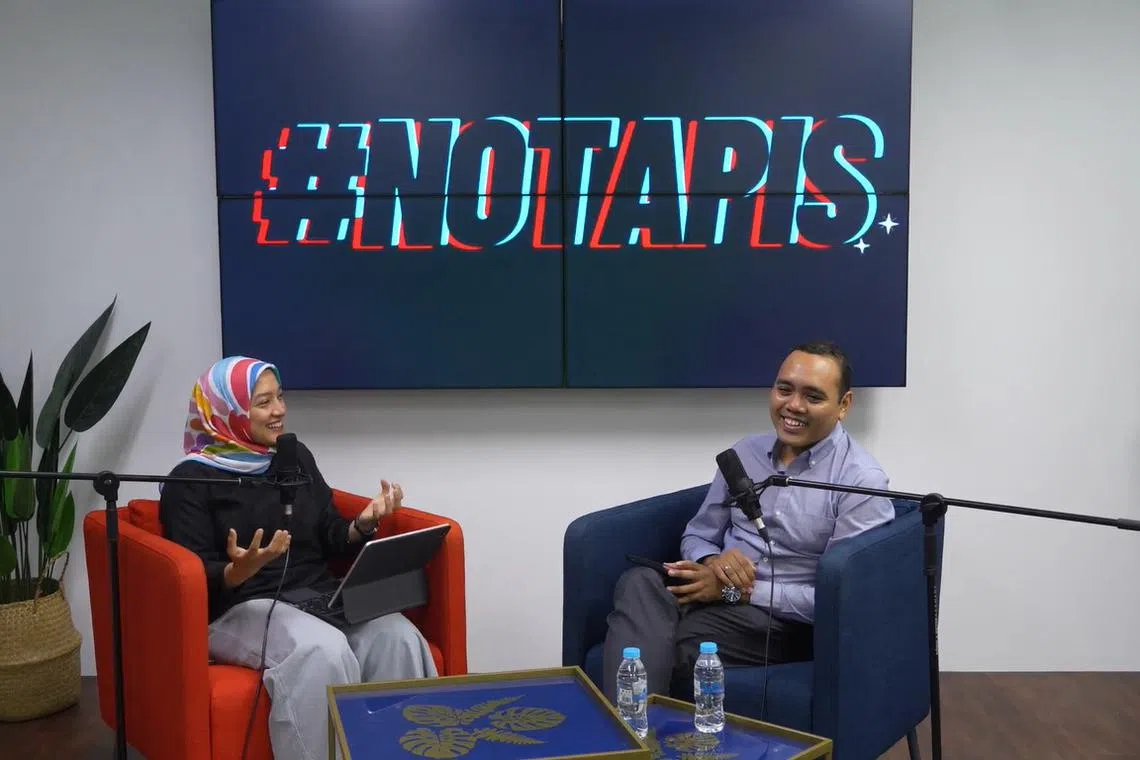 LEBIH GAH: Pengerusi Bulan Bahasa, Encik Zhulkarnain Abdul Rahim (kanan), berkongsi bersama hos #NoTapis Berita Harian, Natasha Mustafa bahawa kegiatan dan program sepanjang kempen Bulan Bahasa bukan sahaja dianjurkan oleh badan-badan Melayu, malah oleh bangsa lain juga. - – Foto BH oleh ABDUL QAYYUM SARIP