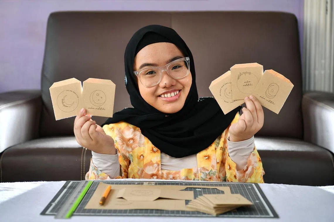 Cik Yulianna, 21 tahun, menghasilkan sampul yang diperbuat daripada kertas yang dikitar semula tahun ini. Namun, ini bukan kali pertama beliau menghasilkan sampul duit Raya sendiri untuk dijual menjelang Aidilfitri.