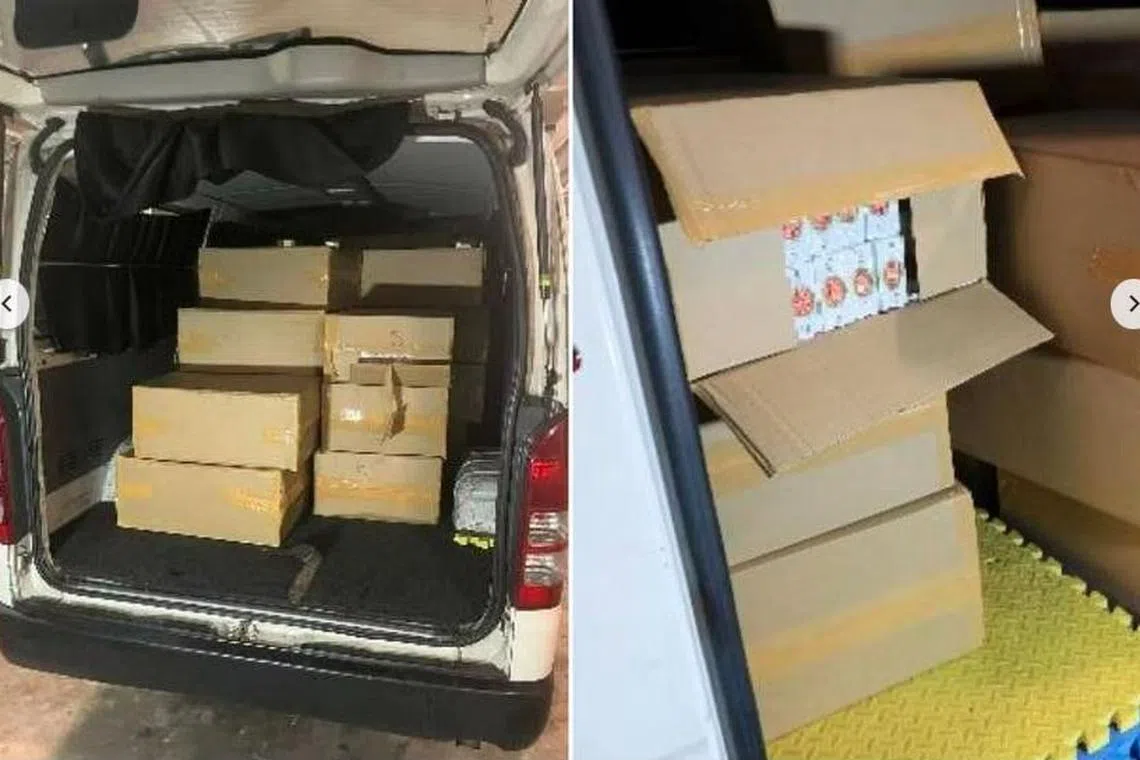 Mereka mendapati 1,580 karton rokok yang tidak dibayar cukai serta wang tunai berjumlah $5,857 – disyaki hasil daripada penjualan rokok seludup itu.