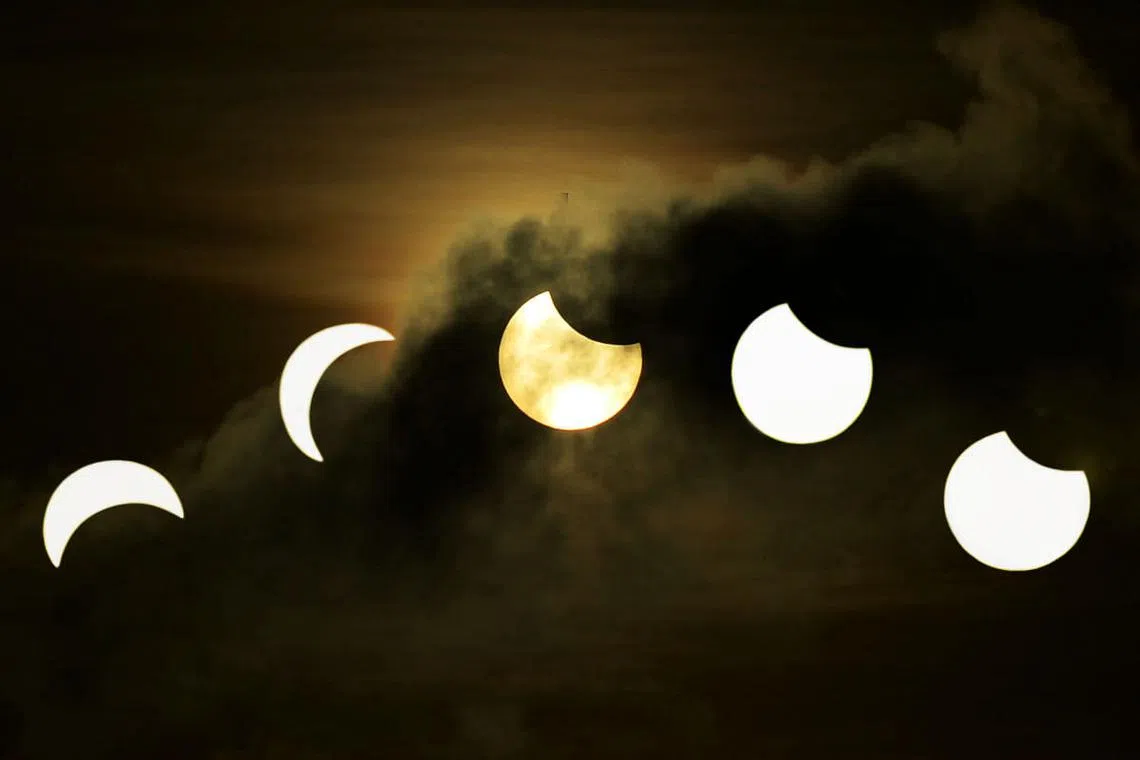 Gerhana matahari berlaku apabila bulan melintasi antara matahari dan bumi, membentuk bayangan pada permukaan bumi. Gerhana separuh, seperti yang dilihat di Singapura, berlaku apabila sebahagian daripada matahari dikaburi bulan.