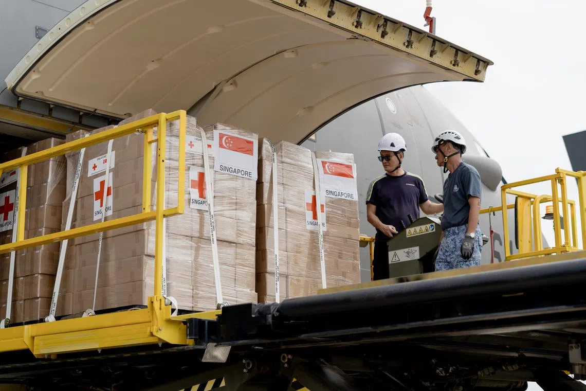 Pakej yang dihantar pada Rabu malam diselaraskan oleh Pusat Penyelarasan Bantuan Kemanusiaan dan Bencana Serantau Changi (RHCC) SAF dan termasuk sokongan daripada Kementerian Kesihatan (MOH), Angkatan Bersenjata Singapura (SAF), serta Palang Merah Singapura, Mercy Relief dan Relief Singapore.