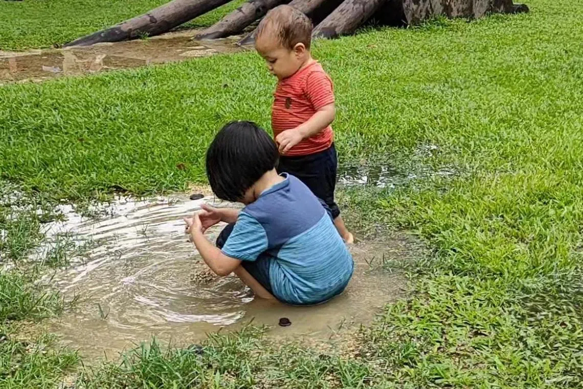 Anak-anak penulis, Munawwarah dan Hamzah Mohammad Hanafi, bermain di ‘Nature Playgarden’ di Taman Pasir Ris. - Foto BH oleh NUR DHUHA ESOOF