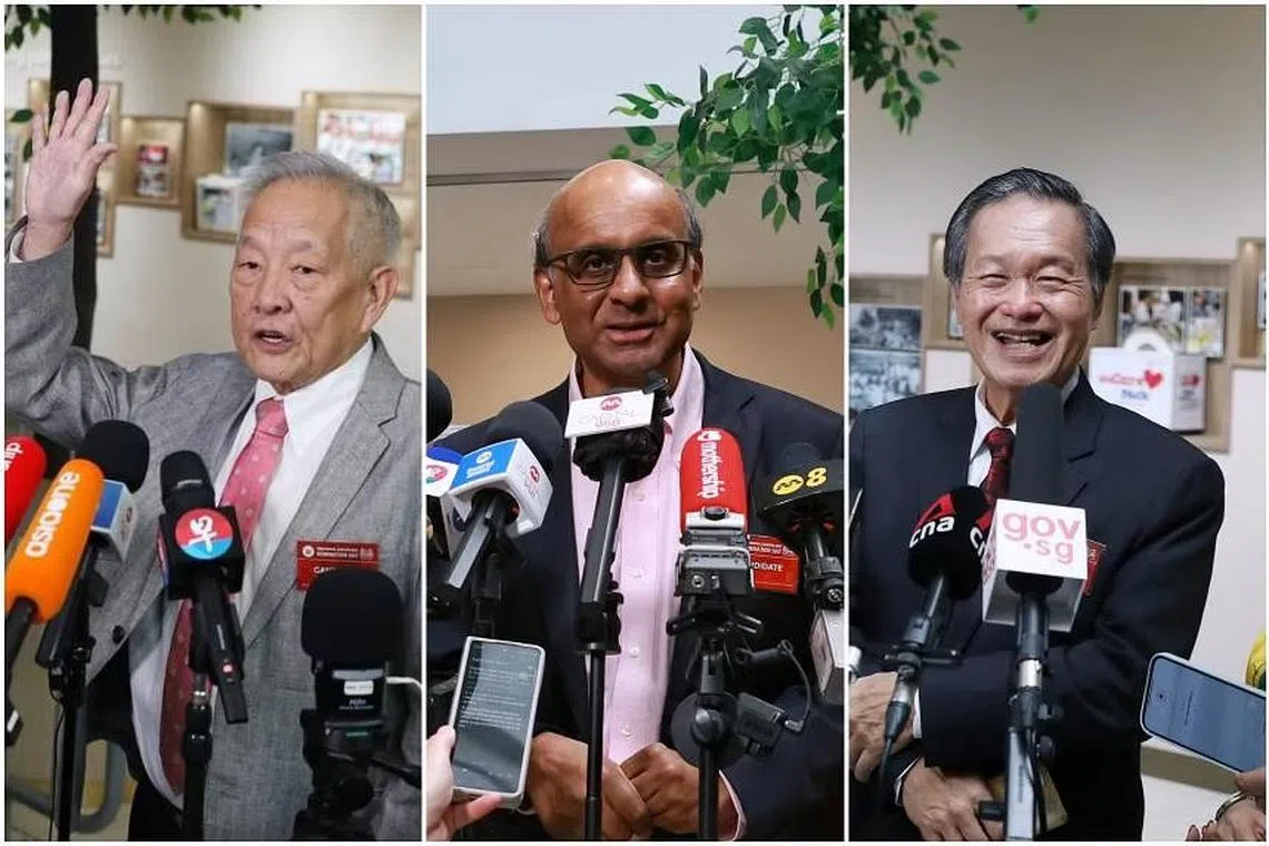 Mantan ketua pegawai pelaburan GIC, Encik Ng, 75 tahun, merupakan yang pertama tiba, diikuti dengan mantan ketua eksekutif NTUC Income, Encik Tan, juga 75 tahun, dan kemudian mantan Menteri Kanan, Encik Tharman, 66 tahun.