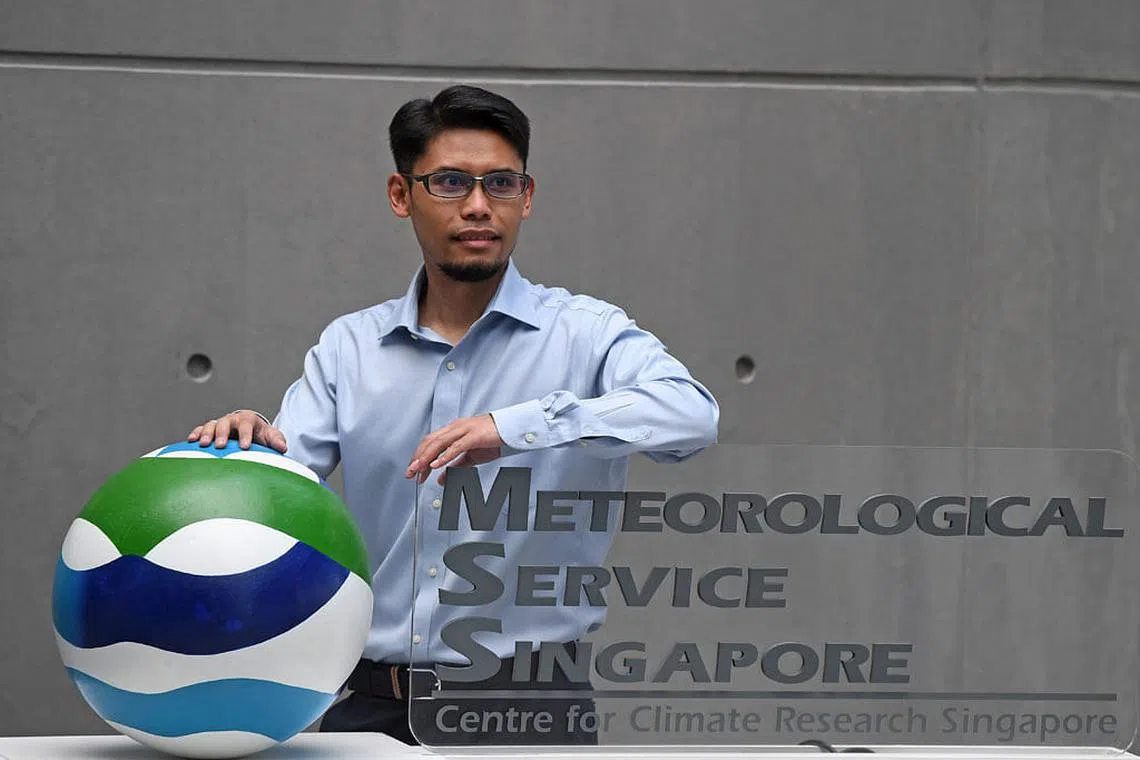 Sebagai saintis penyelidik kanan di Pusat Penyelidikan Iklim Singapura (CCRS), tugas Dr Muhammad Eeqmal Eesfansyah Hassim (gambar atas) cuba memahami sistem iklim, fenomena yang boleh menjejas iklim serta kesan perubahan yang boleh berlaku di masa hadapan.