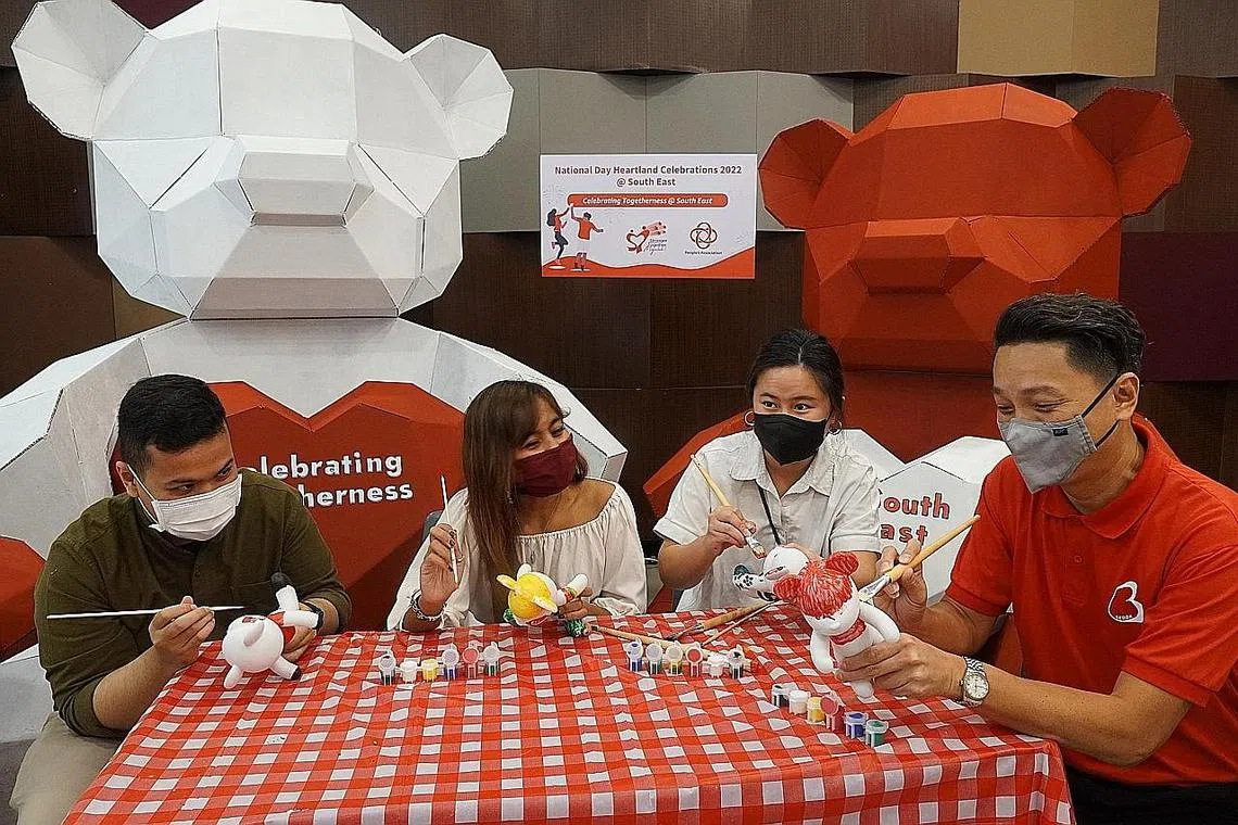 SUASANA NDP: Meskipun pemasangan seni pepatung beruang kecil dilukis 600 penduduk daerah South East dan rakan kongsi akan dipamerkan, para pengunjung masih berpeluang untuk melukis pepatung beruang itu pada hari karnival, yang akan berlangsung pada 7 Ogos nanti. - Foto BH oleh SYED MUHAMMAD FIRDAUS -