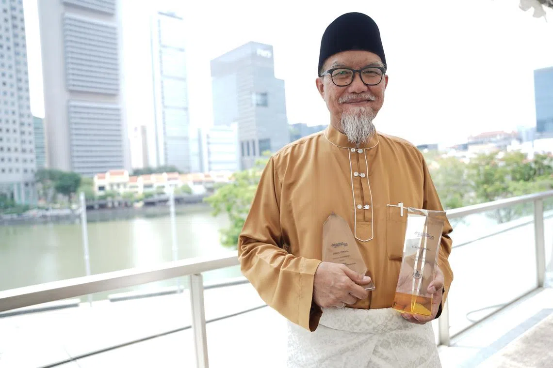 PENGIKTIRAFAN BESAR: Penulis cerpen dan novel mapan Singapura, Encik Jamal Ismail, dipilih sebagai penerima Anugerah Tun Seri Lanang di majlis Anugerah Persuratan 2023 pada Sabtu. Beliau juga mendapat Hadiah Persuratan dalam kategori novel bagi bukunya yang berjudul ‘Mustafa: Epik Kerohanian Seorang Kiai.’ - Foto BH oleh NUR DIYANA TAHA