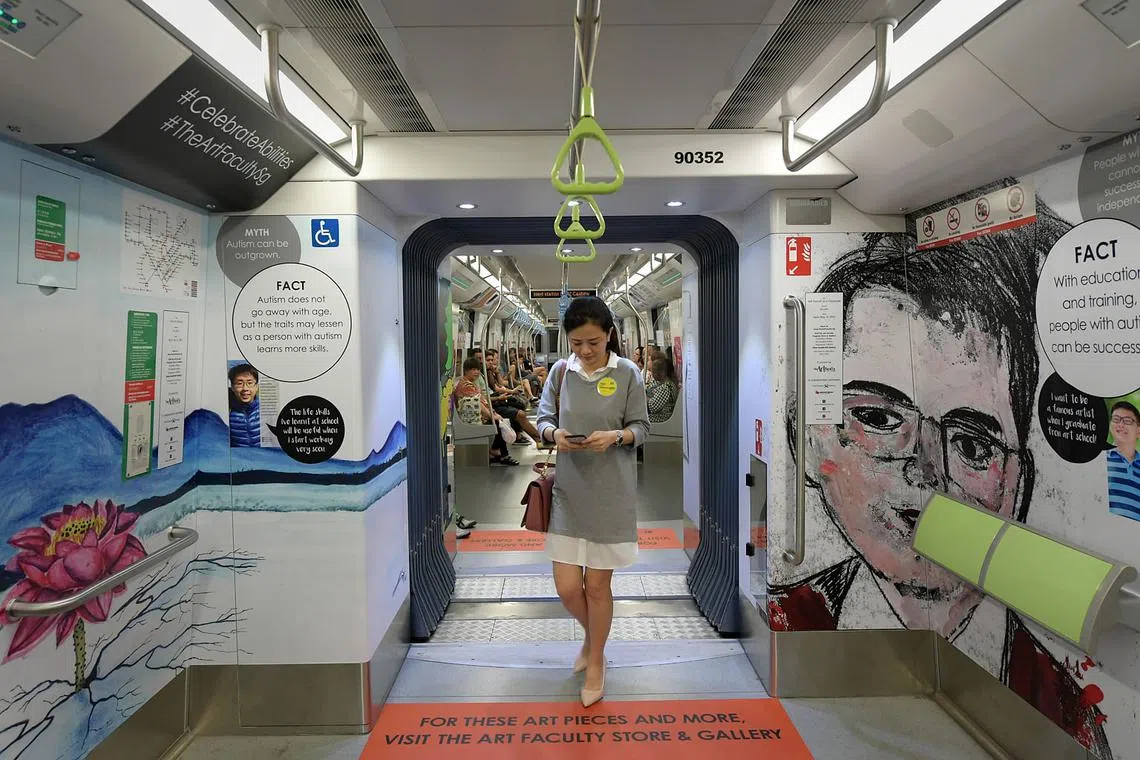 SEBUAH gerabak kereta api istimewa telah dihias dengan karya seni pelajar autisme dalam usaha meningkatkan Kesedaran Autisme Sedunia Singapura.