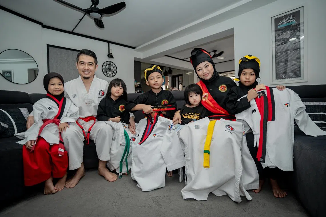 Dr Zulkarnain Ab Hamid (dua dari kiri) dan Cik Shazana Ibrahim (dua dari kanan) bersama anak-anak mereka (dari kiri) Nur ‘Inayah Shifa, Nur Ilaanah Shayista, Muhammad ‘Ilman Shafi, Nur ‘Izzah Shauraa dan Nur Imaani Shafina. Empat anak mereka mengikuti latihan taekwondo dan silat manakala yang bongsu akan memulakan latihan setelah mencapai umur tiga tahun. - Foto BM oleh NUR DIYANA TAHA