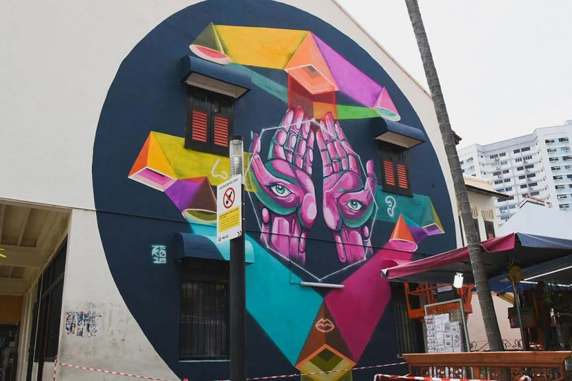 JEJAKKAN kaki anda ke Kerbau Road. Di hadapan mata anda, tersergam indah lukisan geometrik dan piramid berwarna-warni yang melambangkan bagaimana rempah-ratus disimpan di kedai sekitar kawasan Little India.