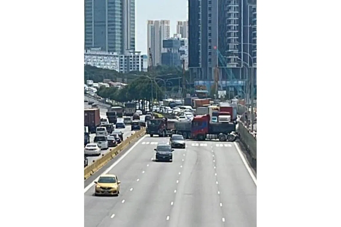 Polis berkata pihaknya dimaklumkan pada 11.03 pagi mengenai kemalangan berhampiran susur keluar Thomson Road menghala ke Tuas. Tiada tiada kecederaan dilaporkan.