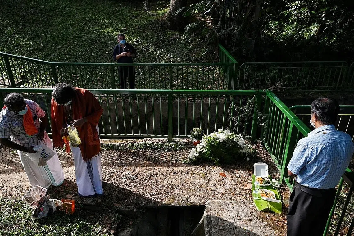 Wakil daripada enam pertubuhan keagamaan, termasuk Imam dan Pengerusi dari Masjid Al-Huda, Encik Mohd Idris Mohd Khair; Venerable Rui Zhen daripada Kuil Beeh Low See dan Encik Francis Lim daripada Gereja St Ignatius, dilihat bertafakur berdekatan dengan longkang besar dekat Upper Bukit Timah di mana mayat itu ditemui pada malam Jumaat lalu.