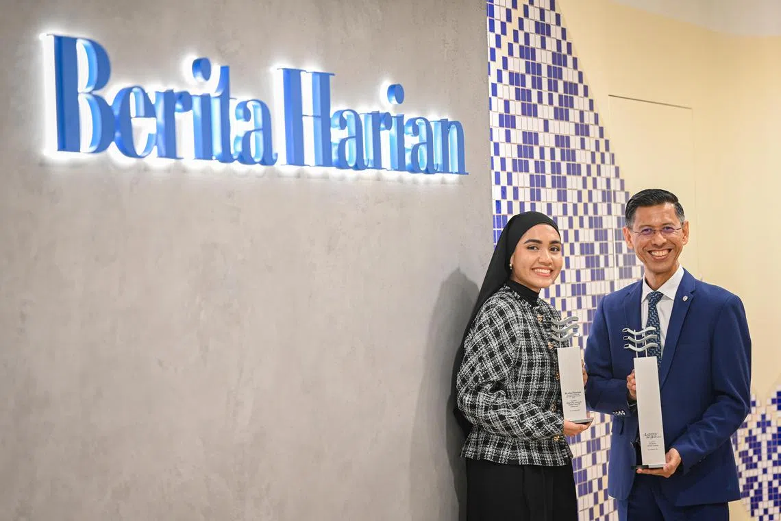 Mereka diberikan anugerah tersebut pada majlis penyampaian Anugerah Jauhari Berita Harian yang diadakan di Four Seasons Hotel Singapore pada Jumaat (3 Nov) dengan sokongan penyampai, FairPrice Group.