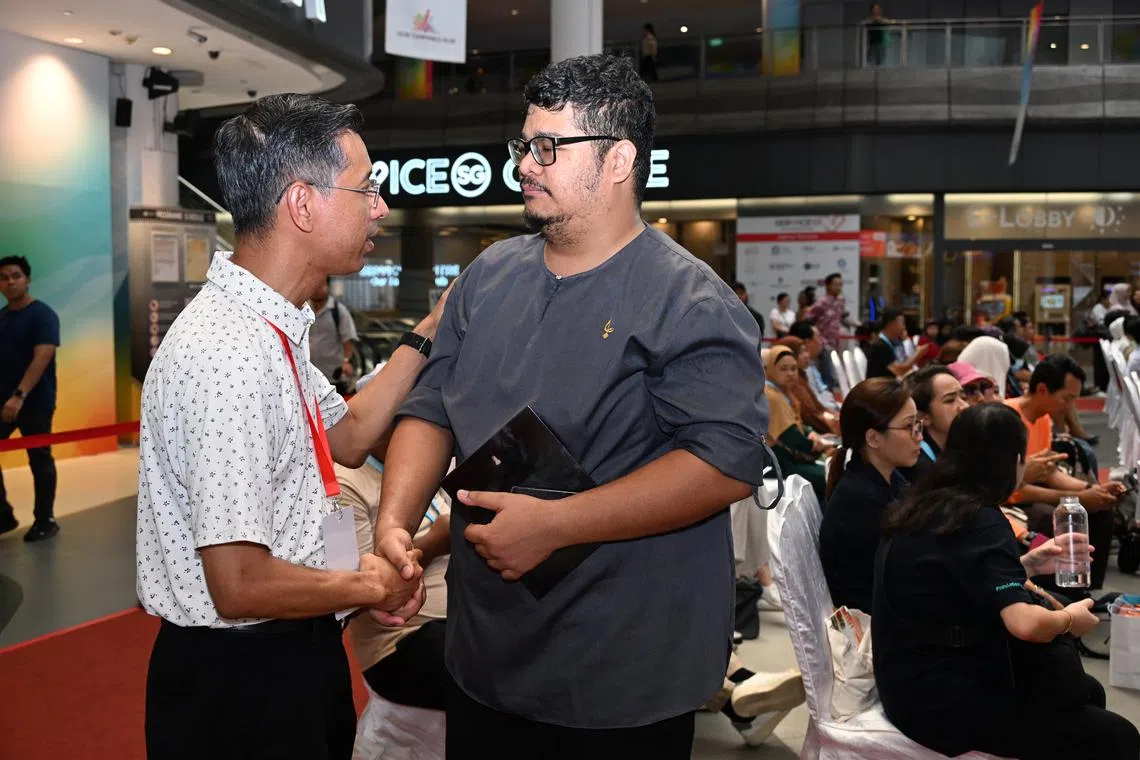 Mantan Ketua Pegawai Eksekutif (CEO) Singapore Post (SingPost) Singapura, Encik Shahrin Abdol Salam, dilihat berbual-bual dengan tetamu yang hadir semasa acara ‘Jaga Kesihatan Jaga Ummah’ (JKJU) pada 15 Februari di Our Tampines Hub.