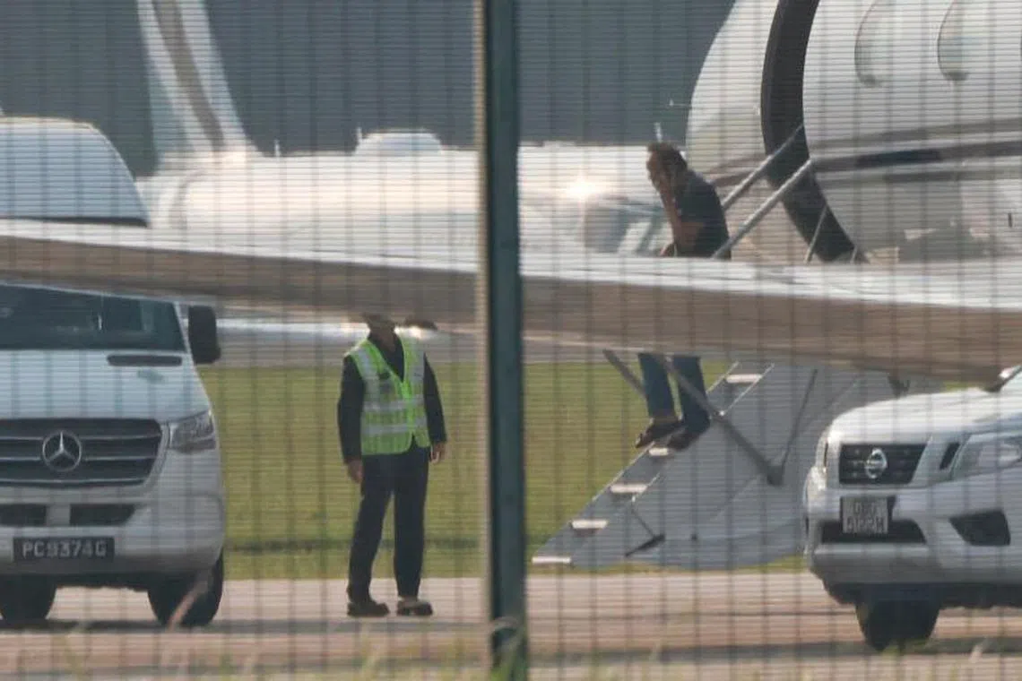 Hartawan Encik Ong Beng Seng kembali ke Singapura dari Bali menaiki jet privet pada petang Isnin selepas dibenarkan untuk keluar negara di bawah ikat jamin berhubung kes rasuah.