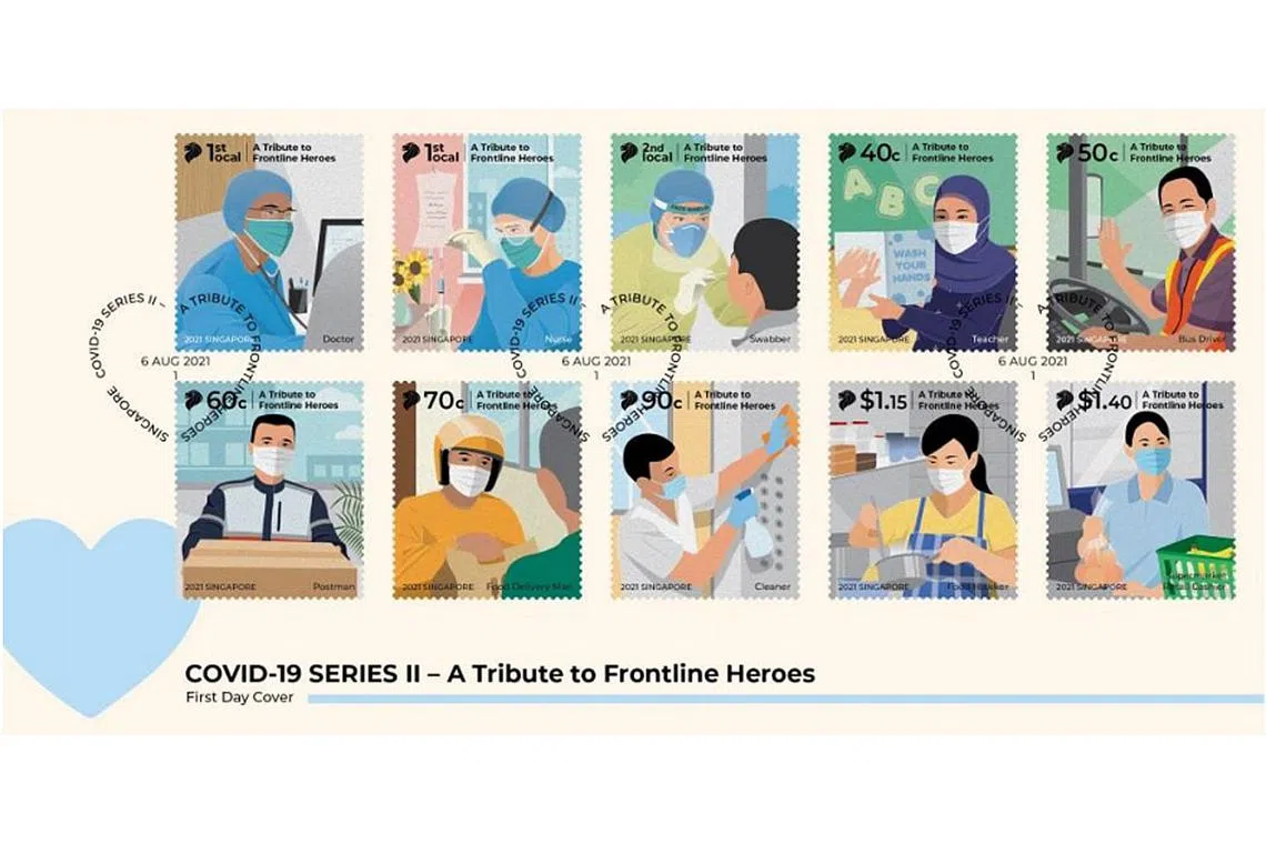 Setem baru itu bertujuan mengiktiraf jasa pekerja barisan depan dalam pandemik Covid-19 dan turut memaparkan pekerjaan lain seperti posmen, pemandu bas dan penghantar makanan.