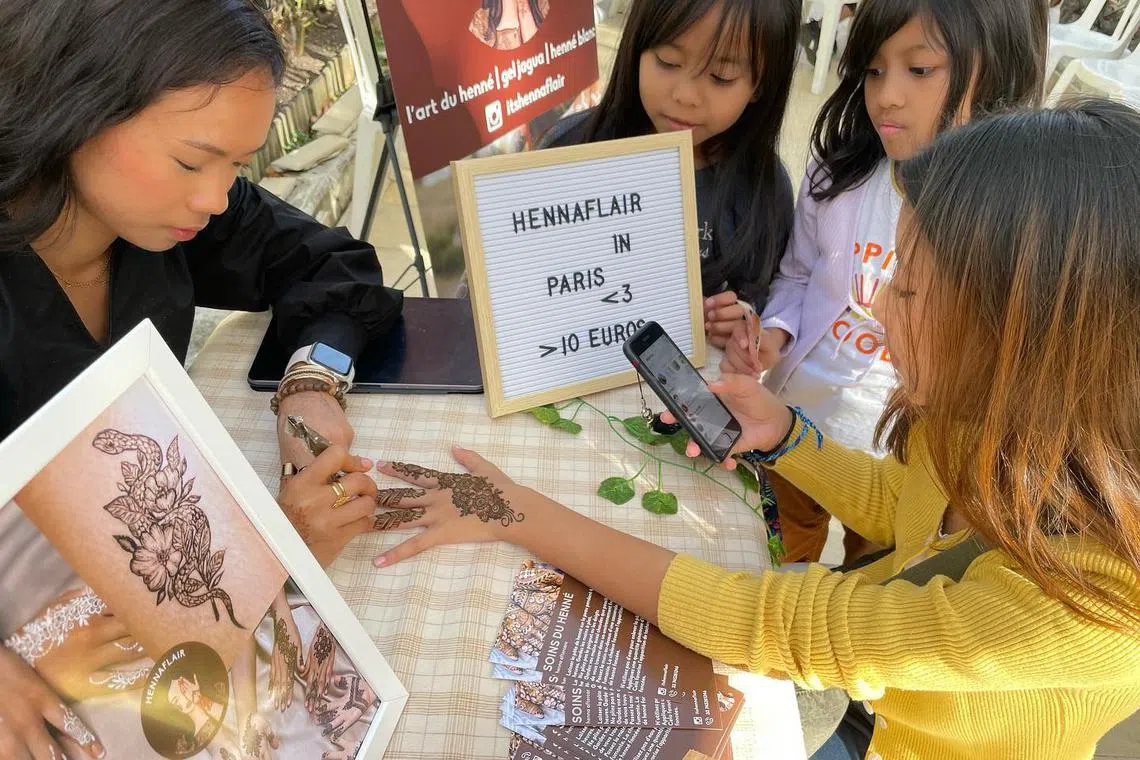Sekitar 300 tempahan menghasilkan seni inai diterima mahasiswi jurusan seni bina Universiti Nasional Singapura (NUS), Cik Azzah Atifah Mohd Ramezan, sejak memulakan perniagaan jenama, Hennaflair pada 2020.