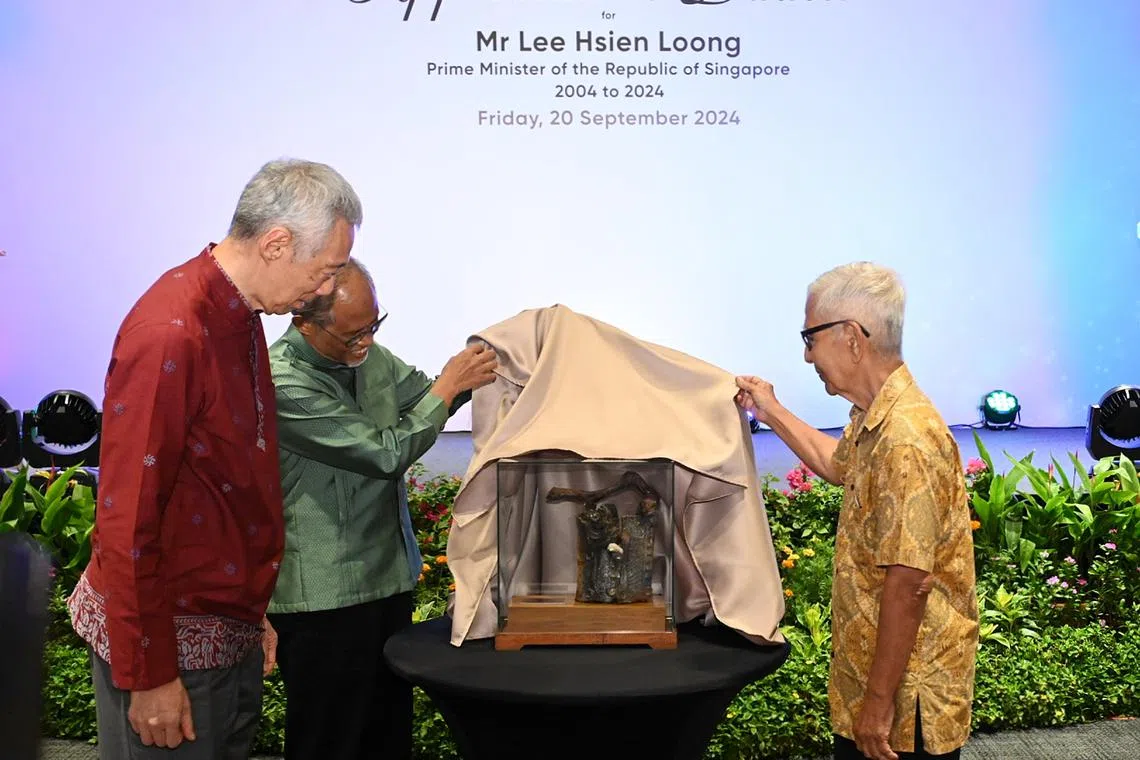 Di majlis itu juga, Encik Lee diberikan hadiah penghargaan istimewa berupakan arca yang dihasilkan oleh pakar tembikar dan penerima Pingat Kebudayaan, Dr Iskandar Jalil.