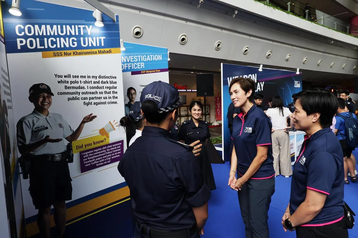 Menteri Perhubungan dan Penerangan merangkap Menteri Kedua Ehwal Dalam Negeri, Cik Josephine Teo, berkongsi data tersebut serta banyak lagi pencapaian anggota polis wanita pada sambutan ‘75 tahun Wanita Dalam Kerjaya Polis’ di Pusat Seni Persembahan, Star Vista, pada 13 April.