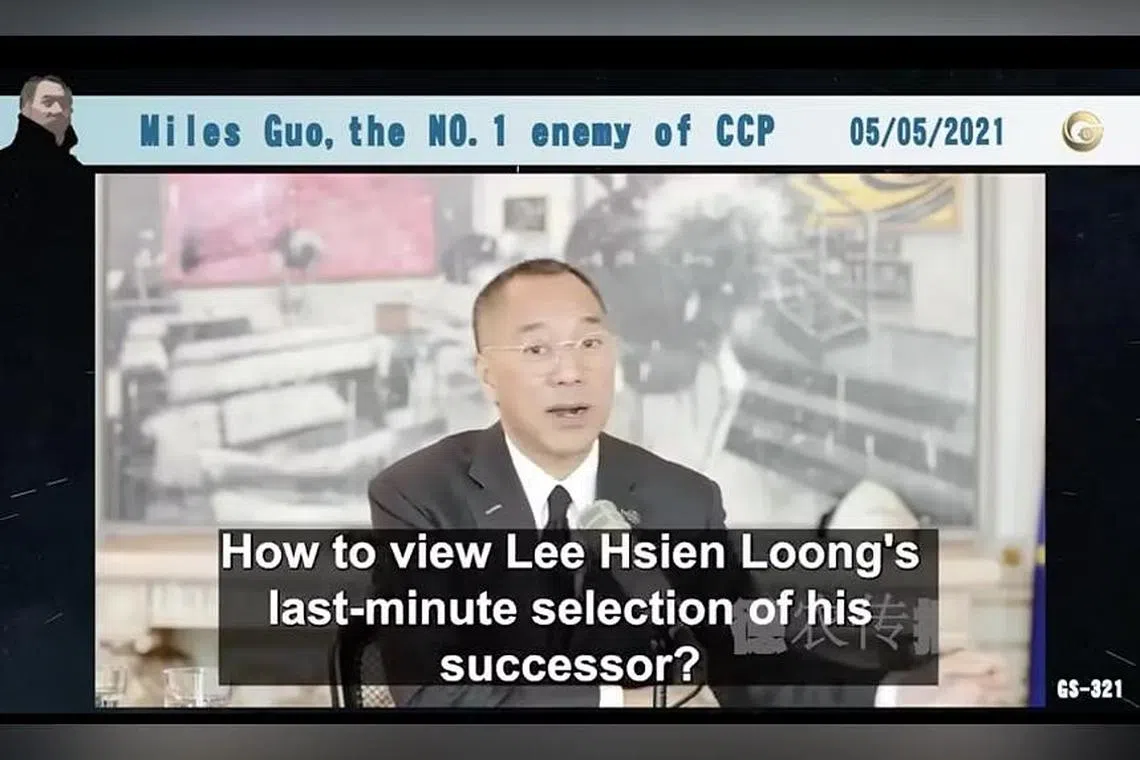 Catatan daripada rangkaian akaun sedemikian, yang dikaitkan dengan Guo Wengui – hartawan asal China dan penentang lantang Parti Komunis China (CPC) yang kini tinggal dalam buangan – juga mendakwa China terlibat dalam pemilihan pemimpin generasi keempat (4G) Singapura.
