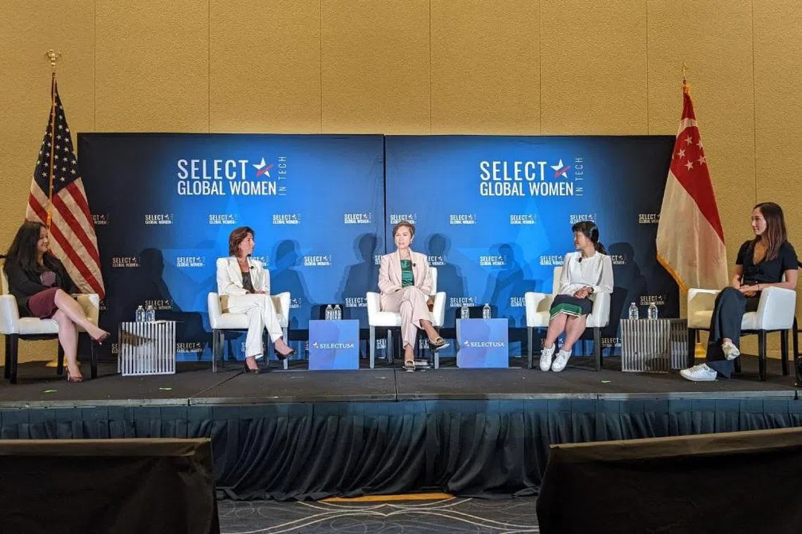 Cik Teo dan Cik Raimondo turut menyertai satu perbincangan panel dengan pemimpin perniagaan wanita Singapura tentang bagaimana pemerintah boleh menyokong usahawan teknologi wanita serta menarik dan membangunkan lebih ramai karyawan wanita dalam industri teknologi.