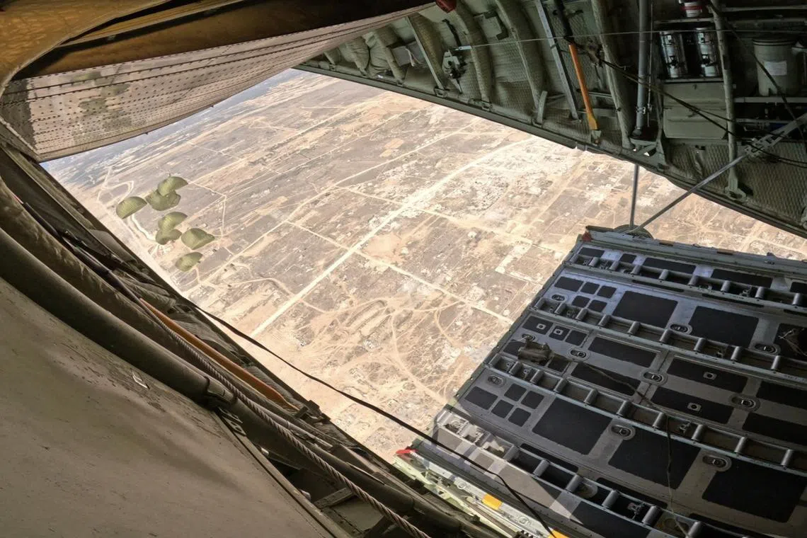Pakej bantuan kemanusiaan itu digugurkan dari udara menggunakan pesawat C-130 RSAF yang berlepas ke Jordan dari Singapura pada 12 Ogos.