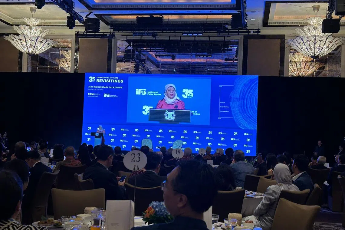 Puan Halimah berkata demikian semasa menyampaikan ucapan di majlis makan malam sempena menyambut ulang tahun ke-35 Institut Kajian Dasar (IPS) di Hotel St Regis pada Isnin (26 Jun).