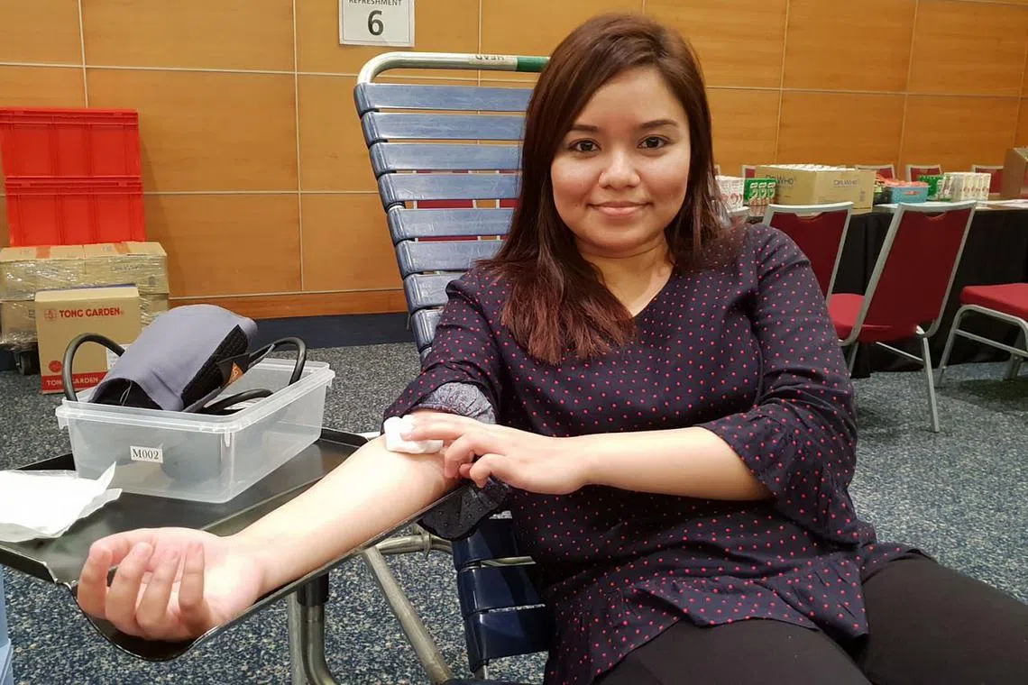 BERI SUMBANGAN: Cik Sharmiela Shahalam mula menderma darah pada usia 17 tahun. Semalam merupakan kali ke-11 beliau menderma darah. - Foto BH oleh SRI AFIQAH HAMIR -