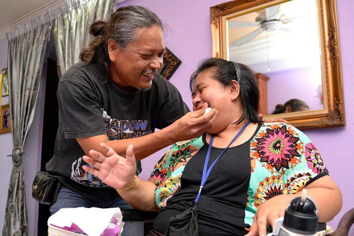 KINI LEBIH TENANG: Encik Jefri kini tidak berasa begitu tertekan menjaga isterinya, Cik Radiah, selepas diberi kaunseling dan panduan menguruskan emosinya oleh pekerja sosial. - Foto SHAKIR SAIFUDDIN -