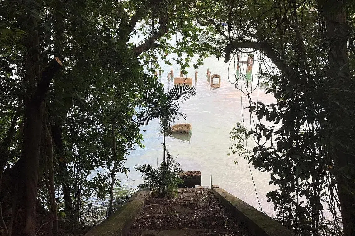 Apa yang tinggal dari tapak jeti ini, yang kini sudah runtuh ditelan zaman, hanya beberapa tiang yang masih berdiri tegap di Pantai Siloso.Cuaca berangin pagi itu membawa suasana nyaman di tapak jeti.