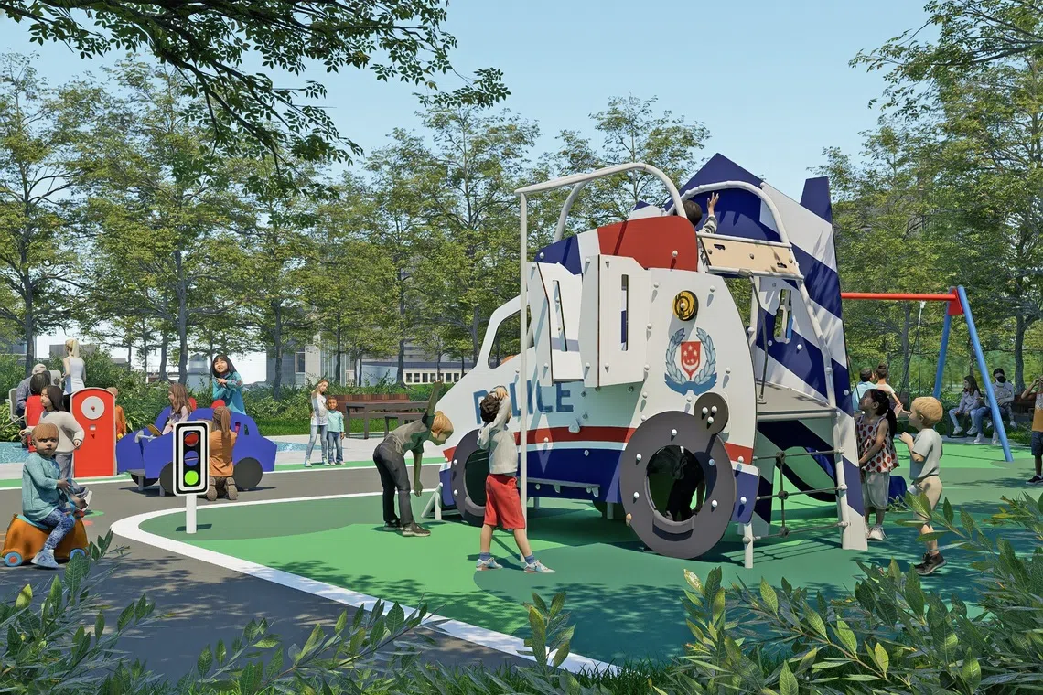 Mengambil inspirasi daripada warisan kawasan Mount Pleasant sebagai tapak akademi polis yang pertama di Singapura, taman permainan di projek Bina Ikut Tempahan (BTO) baru di Mount Pleasant Crest akan menampilkan struktur utama berbentuk kereta polis dan elemen lain seperti corak tanda jalan raya.