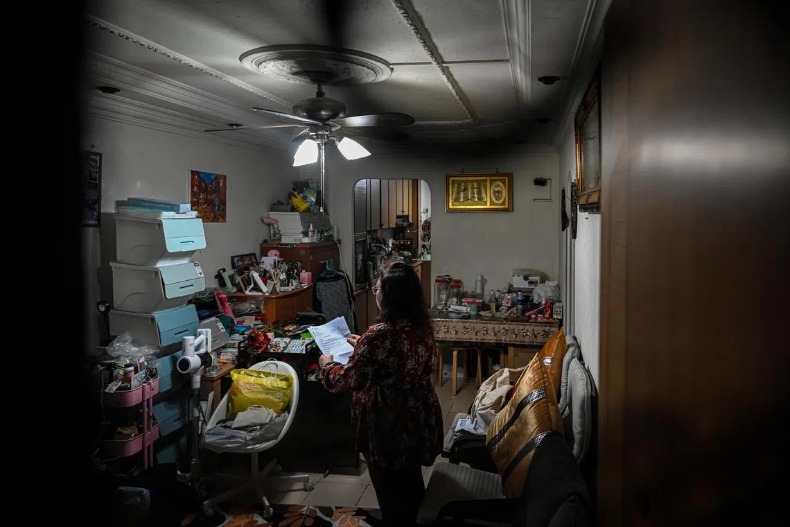 DIBEBANI HUTANG: Cik Salbiah (bukan nama sebenar) menghadapi cabaran melangsaikan hutang setelah mengambil pelbagai pinjaman berjumlah sehingga $25,000 daripada kedua-dua pemberi pinjaman wang berlesen dan tidak berlesen. - Foto BM oleh SHAFIQ APANDI