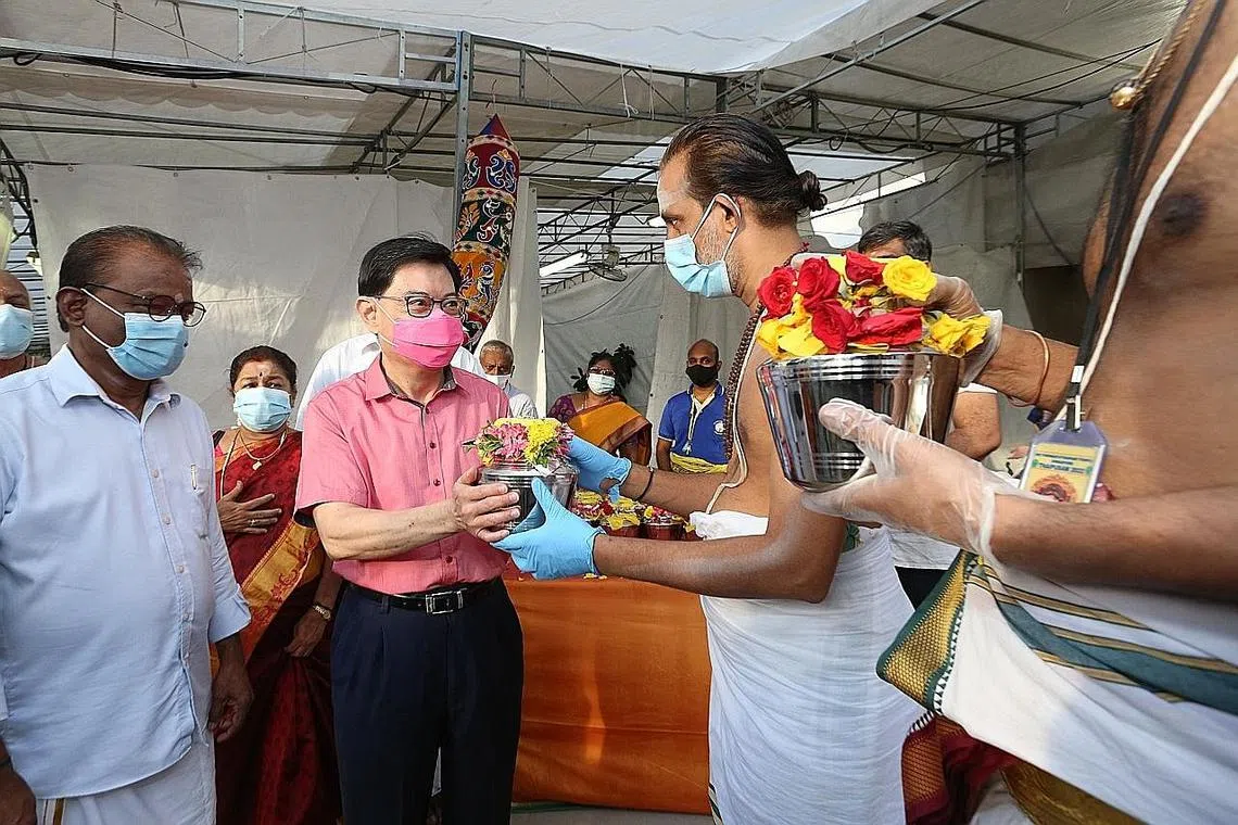 TIMBALAN Perdana Menteri, Encik Heng Swee Keat, menjadi tetamu kehormat pada perayaan Thaipusam di Kuil Sri Thendayuthapani di Tank Road pagi semalam.