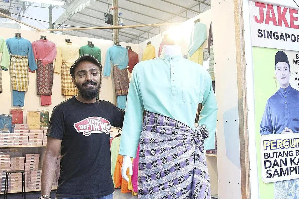 Di bazaar Woodlands, pelanggan boleh mendapatkan koleksi pakaian baju kurung lelaki jenama Awal Ashaari dan Aaron Aziz di gerai Jakel Singapura.