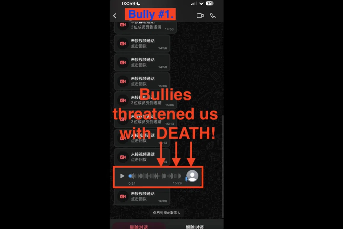 Dalam catatan pada Khamis (14 Ogos), seorang pengguna Facebook bernama Cik Ni Yin mendakwa sebagai ibu mangsa dan memberi butiran dakwaan buli yang membawa kepada ugutan terhadapnya dan keluarganya.