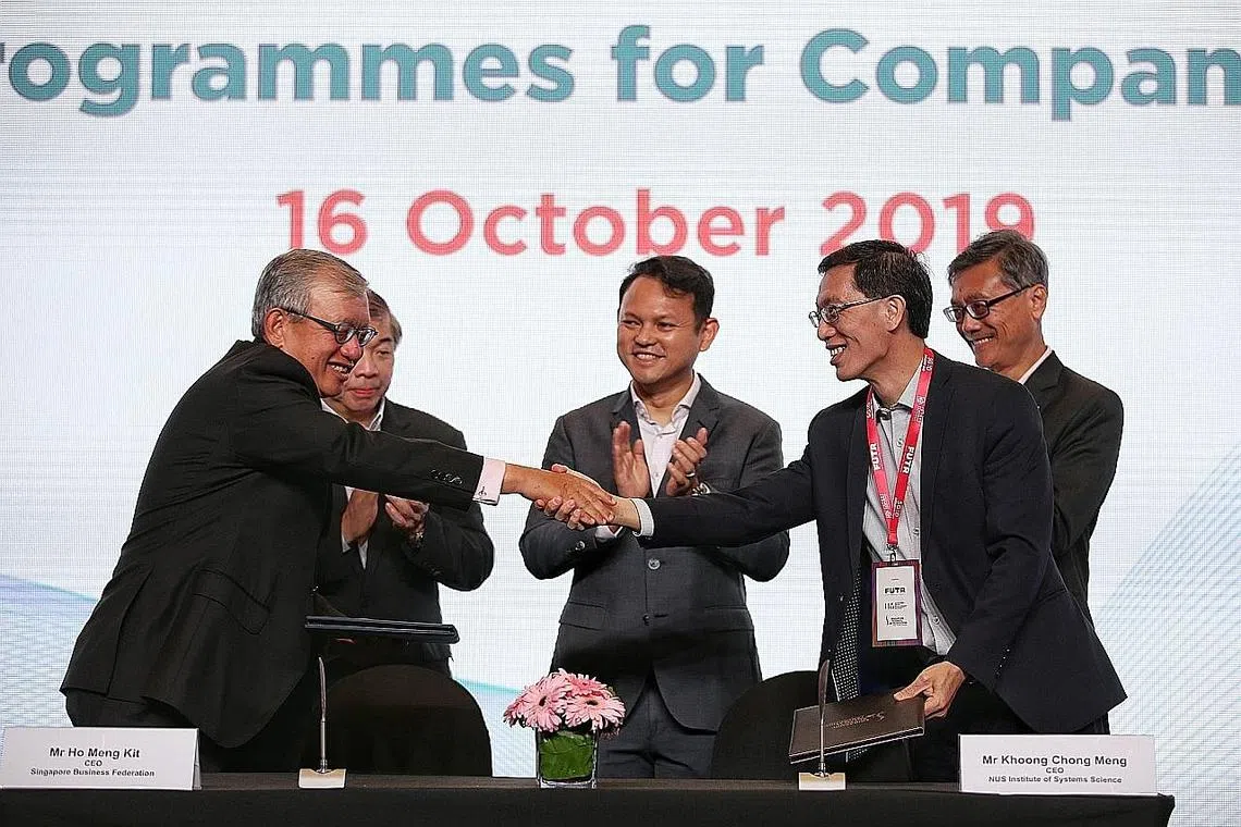 Program itu akan ditawarkan oleh Persekutuan Perniagaan Singapura (SBF) dan Institut Sistem Sains Universiti Nasional Singapura (NUS-ISS), menyusuli satu pemeteraian perjanjian persefahaman memorandum semalam.