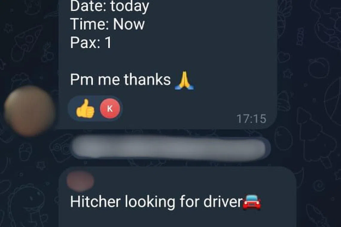 Sebelum ini, kumpulan chat seperti itu memadankan penumpang dengan pemandu bagi khidmat pengangkutan Singapura ke Johor Bahru.