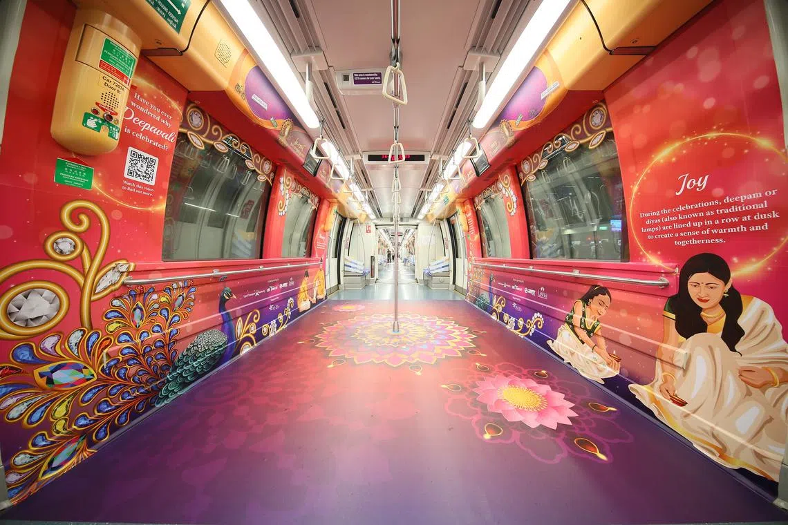 Penumpang MRT akan dapat menikmati suasana penuh meriah dalam beberapa kabin kereta api serta stesen MRT tertentu yang dihiasi warna-warna serta elemen perayaan Deepavali mulai Isnin.