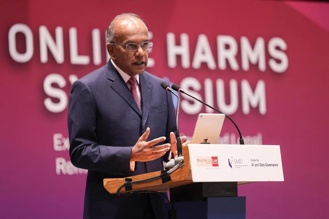 PERLU PERHALUSI UNDANG-UNDANG: Menteri Ehwal Dalam Negeri merangkap Undang-Undang, Encik K. Shanmugam, berkata undang-undang Singapura perlu diperhalusi demi melindungi mangsa bahaya dalam talian. - Foto ST