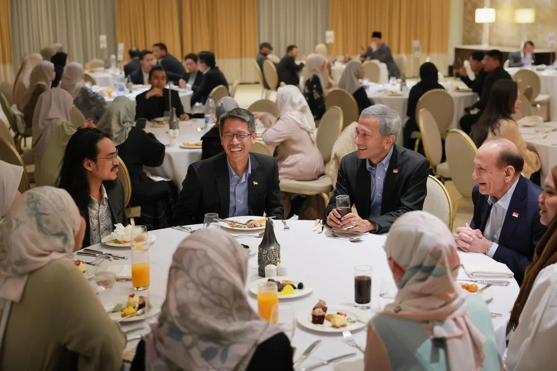 Dr Balakrishnan, bersama Menteri Negara Kanan (Pertahanan merangkap Tenaga Manusia), Encik Zaqy Mohamad, serta Anggota Parlimen, Encik Alex Yam, Encik Gerald Giam, Cik Nadia Ahmad Samdin, Cik Rachel Ong, dan Encik Zhulkarnain Abdul Rahim menyertai para pelajar dalam satu majlis berbuka puasa di Amman, Jordan.